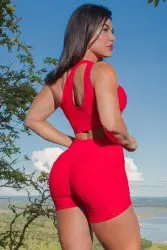 Ignite your workout with our Red Texturized Fitness Set! This vibrant ensemble features a low cut cropped top with a decorative bust opening and an asymmetric single shoulder strap, paired with high-waisted shorts. Bold, red, and full of energy, this set will make you stand out while you conquer any challenge.