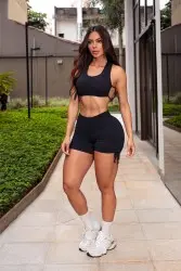 A super light and fresh black textured set. Top with racerback and ties, which add a lot of charm, in addition to the shorts being short, high-waisted and also having ties on the sides, completing the final look.