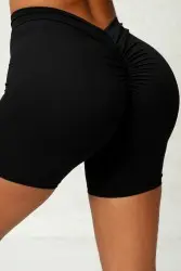 Features: Flexible, malleable, black high-waisted shorts. Has a butt lifter.