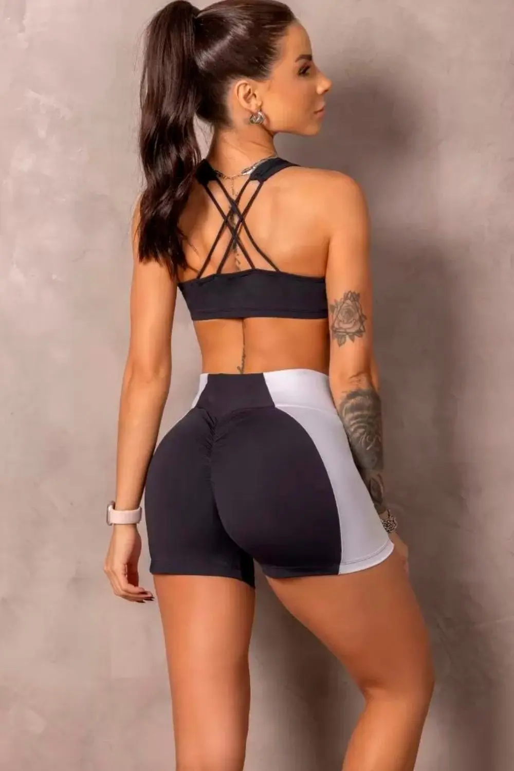Black athletic shorts with a butt-lifting design and a high waist that flatters your figure. Made from a firm, comfortable fabric, they feature cutouts that highlight your figure and ensure a perfect fit during your workout.