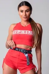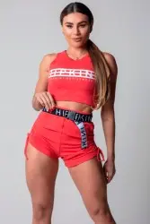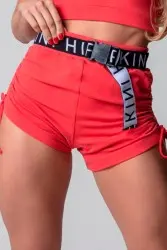 Red fitness shorts with a slim fit that flatters your figure. They feature adjustable draped sides and a custom-fitted waistband, ensuring style and security during your workout. Comfortable and modern, they're ideal for workouts or casual, sporty looks.