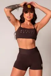Brown fitness shorts with a silhouette-defining design that offers style and exclusivity. Comfortable, modern, and perfect for workouts or casual outfits.