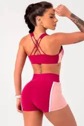 Magenta fitness shorts with a silhouette-defining design that offers style and exclusivity. Comfortable, modern, and perfect for workouts or casual outfits.