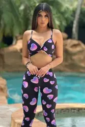 Black jumpsuit with purple heart print, super comfortable and stylish.