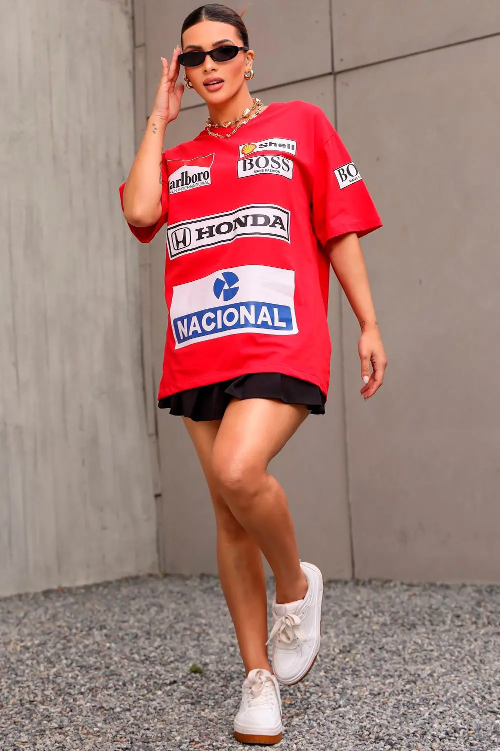 Red racing-style T-shirts with logos and a loose fit, perfect for urban looks.