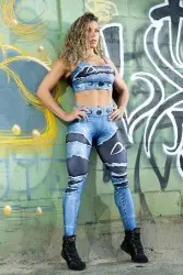 Features: Top made of fabric that imitates destroyed jeans, with cutout in black fabric on the back. It has Dynamite writing on the front and adjustable black straps.