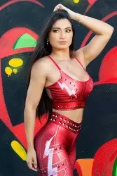 Step up your style game with this edgy red top! Featuring a unique faux leather-inspired design, this piece is sure to make a statement. The bold graphics create a modern and chic look, while the classic black color ensures versatility and easy pairing with your favorite bottoms.