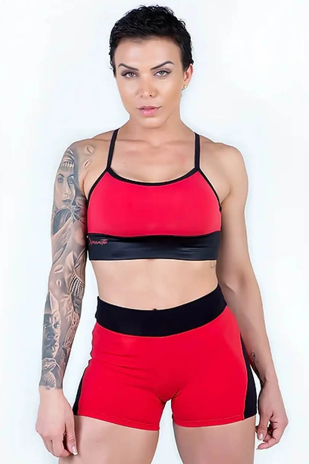 Get ready to crush your workout in style with our bold and beautiful red fitness top! Featuring sleek black shoulder straps and a waistline-enhancing black detailings and an additional black fabric over the back, this top is designed to make you look and feel amazing.