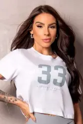 White cotton cropped top with a "33" print on the front and the Hipkini Sports logo. Loose fit, ideal for sporty or casual looks with comfort and style.