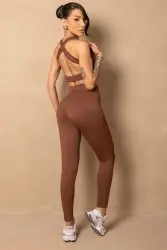 Elevate your workout and your look with the Time For Me Brown Cross-Strap Top, the perfect combination of fashion and performance. In the monochromatic brown trend, this piece is essential for those seeking comfort, security, and a modern look, both at the gym and in everyday life.