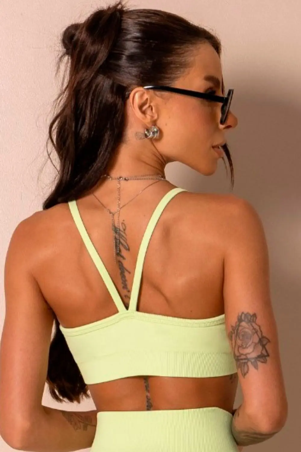 Developed with seamless technology and a ribbed texture at the hem, this product offers absolute comfort combined with a sophisticated look. It features thin, straight straps at the back and an internal opening for padding, providing lightness, support, and freedom of movement.