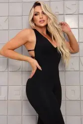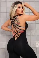 The rear butt details are a true highlight of this piece. Developed with care and precision, the jumpsuit enhances and enhances your curves, providing an elegant and sensual appearance. And let's not forget the crossover straps, an element that adds a touch of boldness and style to the jumpsuit. These strategically placed straps create a unique look, enhancing your back and adding extra flair to the garment.