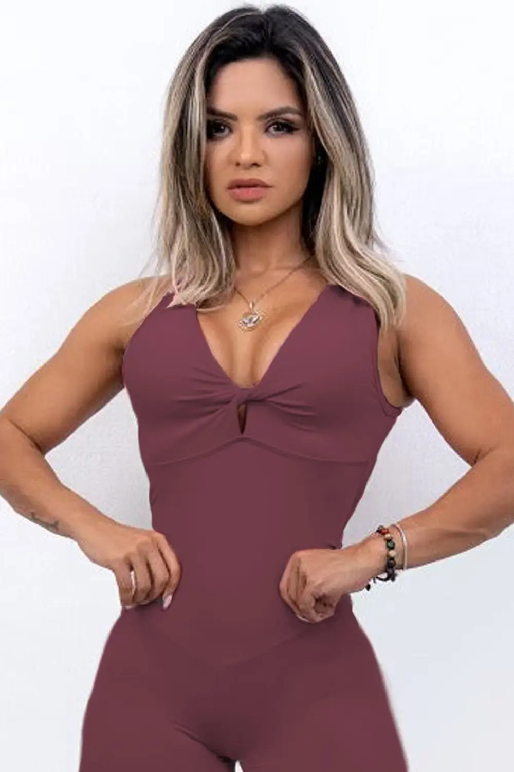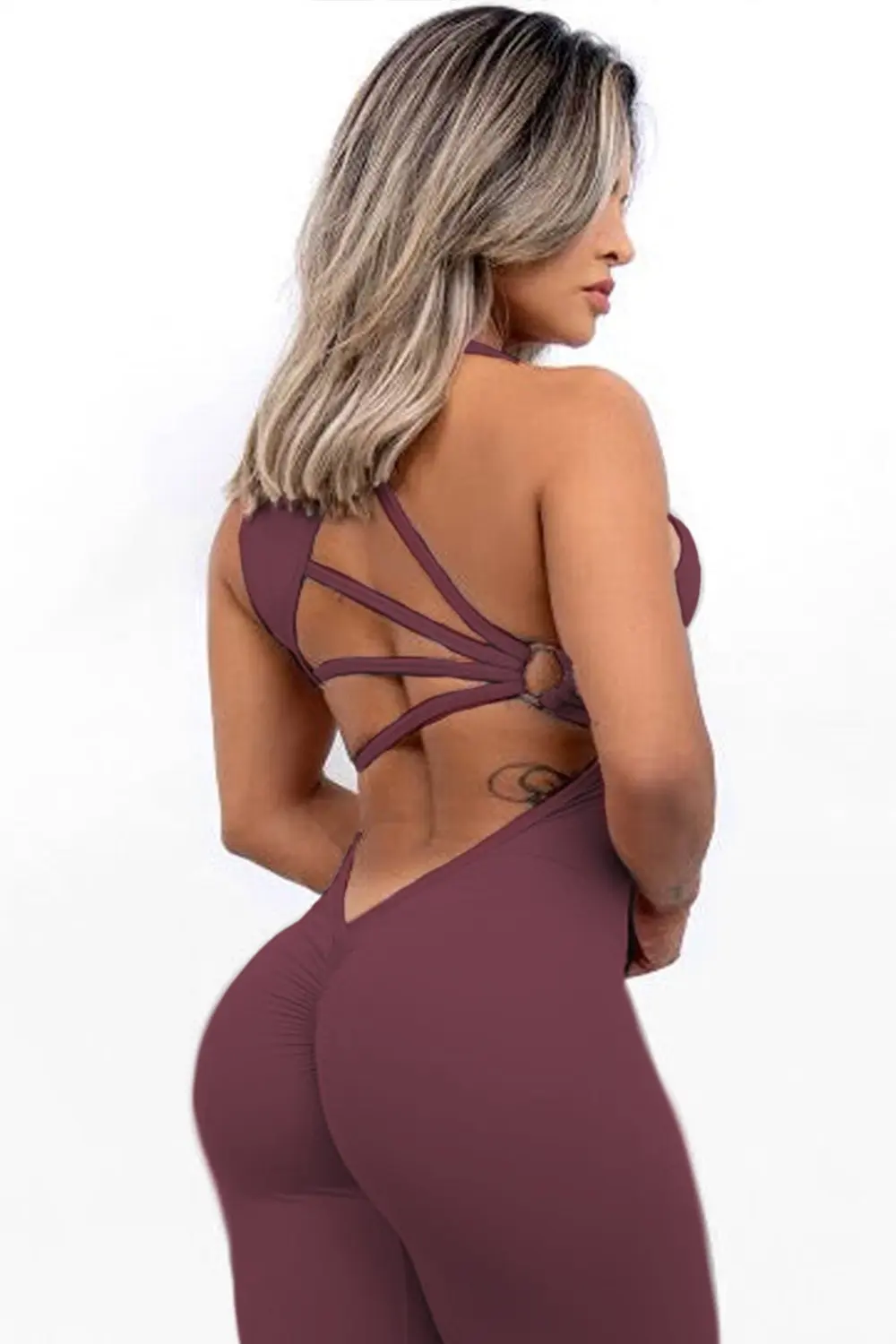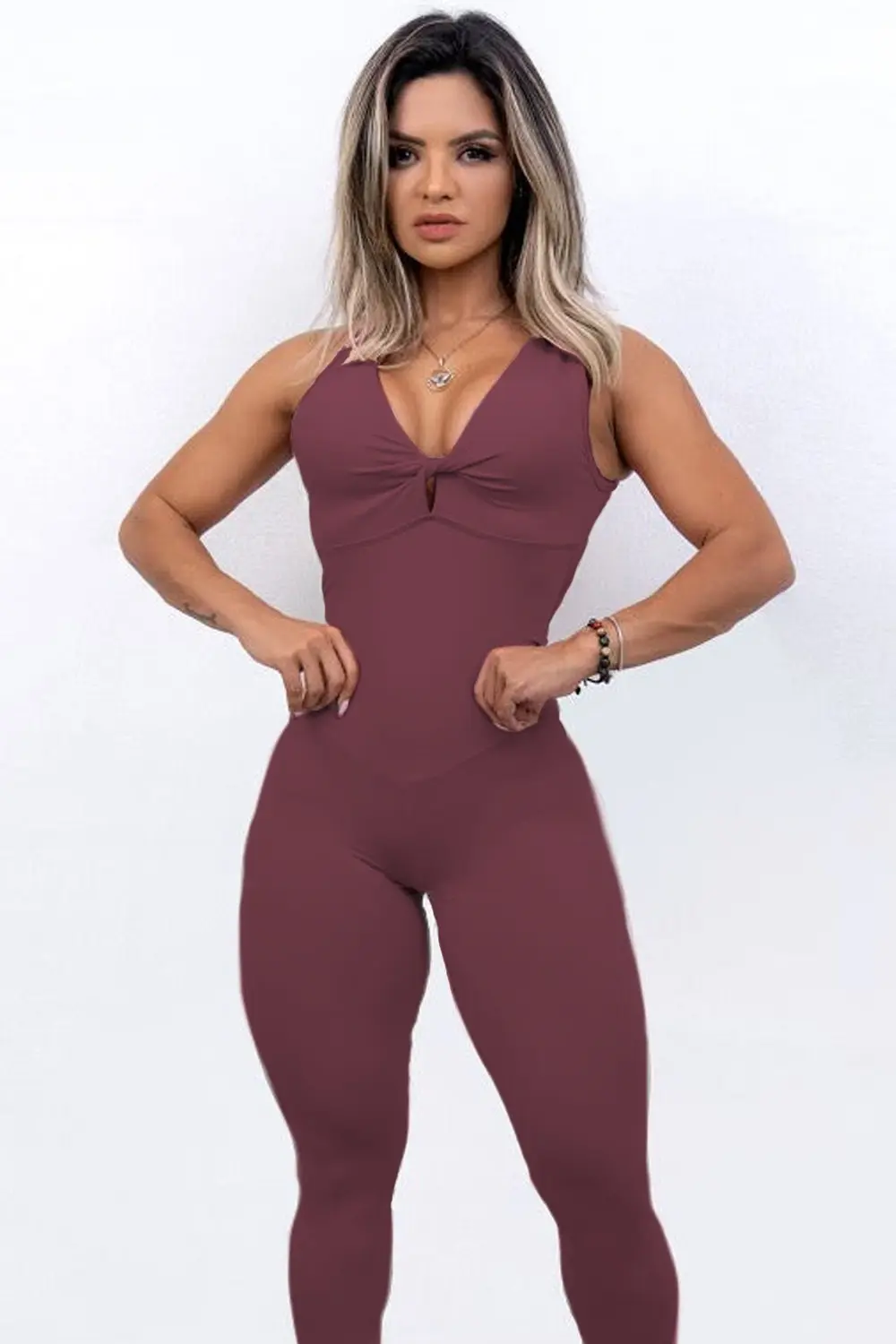 This versatile antique rose jumpsuit is simply irresistible! Its soft hue evokes a feeling of freshness and vitality, perfectly matching the radiant energy of your workouts. Its low-cut back design is truly enchanting, revealing a touch of boldness with subtlety and class.