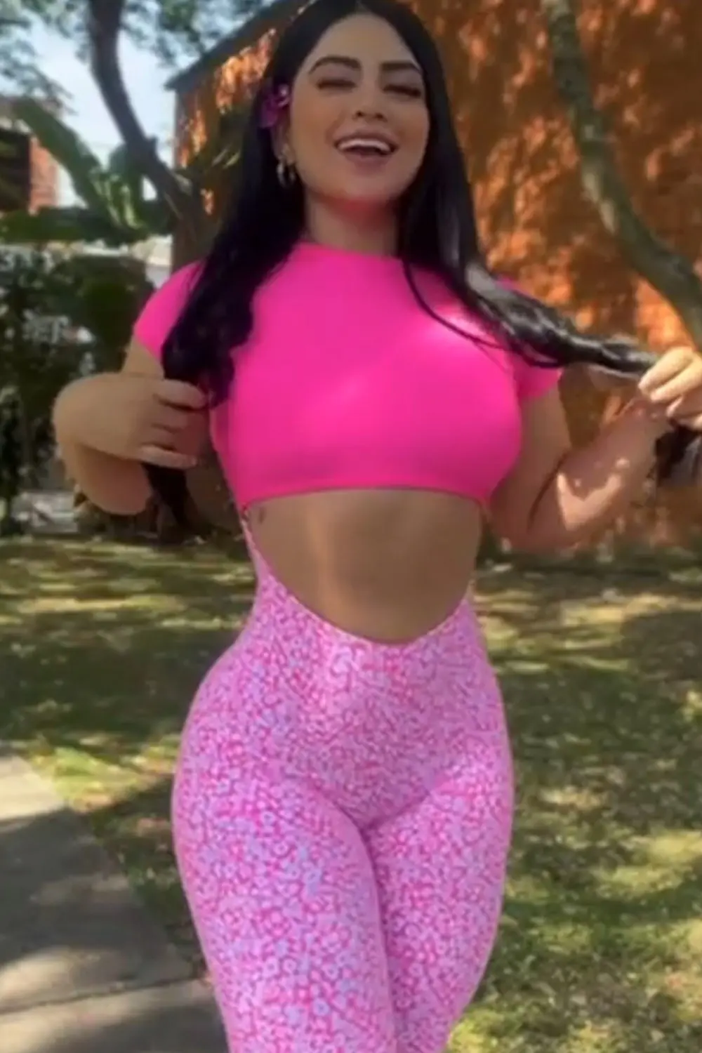 Introducing our vibrant Fitness Jumpsuit - where fitness meets floral fashion! This jumpsuit is a game-changer with its playful opening over the abdomen, creating a striking two-part design. The upper section boasts a chic front-only piece with short sleeves, while the lower half blooms with a vibrant pink and white flower print.