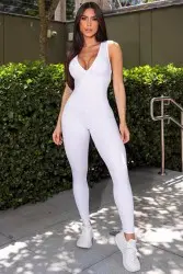 Characteristics: White jumpsuit with straps crossed in the back, has a high butt.