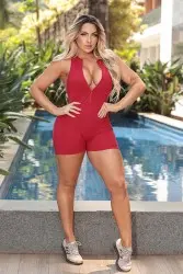 This red fitness romper is the perfect choice for those who want practicality and style during their workouts. With a fitted design that enhances your curves, it has a front zipper for a practical fit and a neckline that highlights your bust. The lightweight and comfortable fabric provides total freedom of movement, ensuring that you feel amazing while you work out. Ideal for weight training, running or any activity where comfort and confidence are essential!